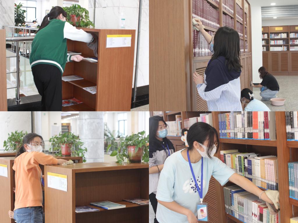 无声劳动,服务传情。随着疫情防控形势逐渐向好,学校图书馆经过周密准备于近日有序恢复开放。为给同学们营造一个清新怡人、干净整洁的读书学习环境,学校各级团学组织积极动员、争当表率,自带劳动工具有序前往图书馆,开展义务清扫活动。同学们不畏脏、不怕累,动作敏捷、分工明细、配合默契,清扫地面、擦拭书架、整理图书,轻声细语、轻拿轻放,为营造整洁、有序的校园环境做出了自己的贡献。