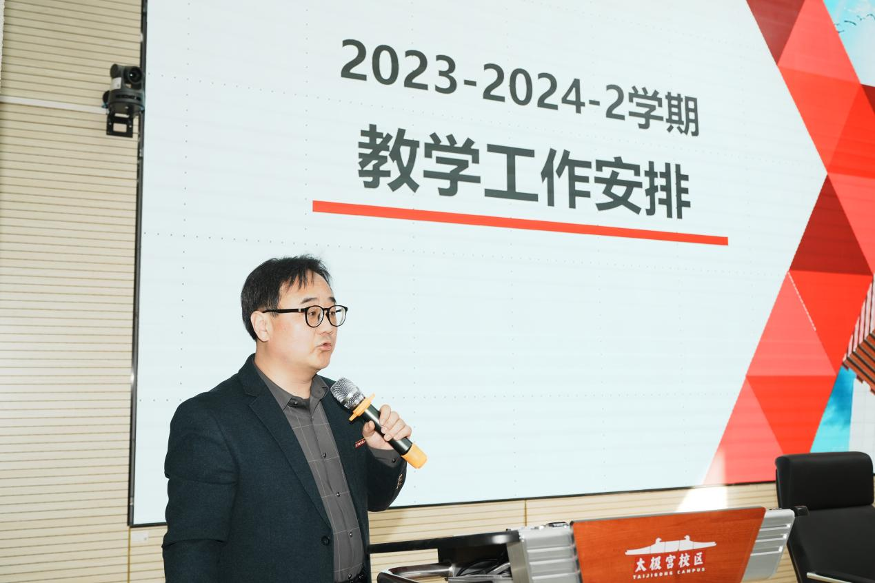副院长冯强通报2023年教学评建验收中存在的问题并部署新学期教学及评建工作。2023年底,校内外专家组对于毕业设计、试卷、课程资料等进行了评估指导,要求老师在新学期严格要求,逐步整改,确保教学评建工作质量稳步提升。同时,他对新学期教学、科研、学科竞赛、校企合作等工作提出了更高的目标和要求,要求所有老师积极配合,严格落实,远离教学工作红线。