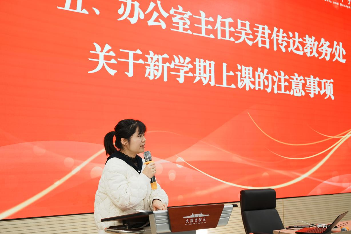 最后,院长苟秉宸总结讲话,“一年之计在于春,一日之计在于晨”,新学期、新希望、新征程,他号召所有老师在春季学期凝聚共识、团结合作,一起携手踏上教学评建、专业建设、招生就业、师资队伍建设、毕业设计展等各项工作的奋斗征途,为学院的高质量发展贡献力量!