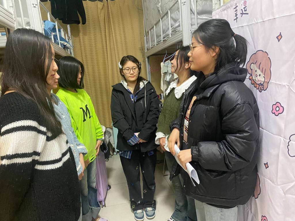 为进一步落实了解春季学期学生返校报到情况,加强宿舍管理,营造新学期良好生活氛围。3月3日晚上,语言文化传播学院党委副书记杨峰带领全体辅导员深入学生宿舍,开展新学期宿舍走访工作。