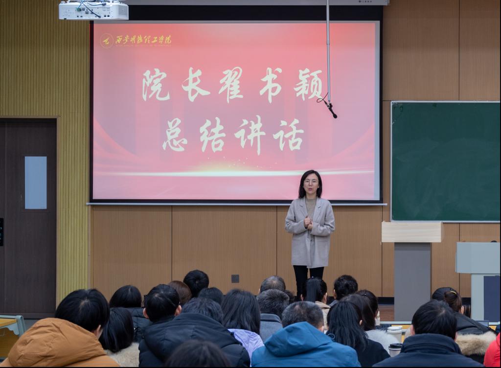 最后,学院执行院长翟书颖作了总结讲话,她回顾了2023年各项工作的开展情况、取得的成绩,强调了新学期的目标和任务。她要求全体教师以更加饱满的热情、更加务实的作风投入到新学期的各项工作中去。同时,还希望全体教师能够加强学习、提升自身能力,保持教育教学的初心和热爱,全力支持学院的工作,为学院的发展贡献更多的智慧和力量。