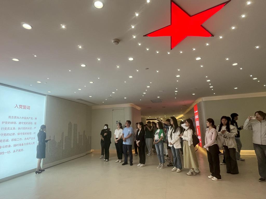 “我志愿加入中国共产主义青年团,坚决拥护中国共产党的领导……”深圳空管站团委书记庞秋媛带领大家重温入团誓词。青年学生高擎右拳,以铿锵有力的宣誓声,表达牢记初心使命的信念和决心,胸前的团员徽章与面前的团旗交相辉映、熠熠生辉。