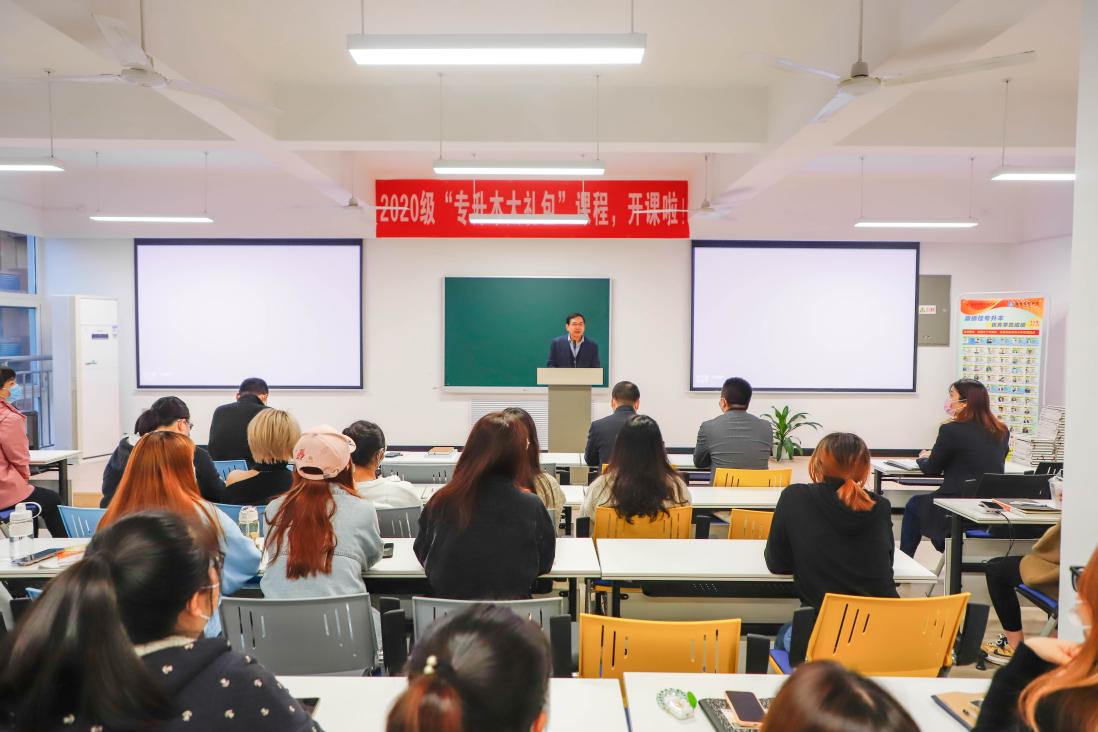 仪式开始,杨健君校长结合国家对职业发展教育理念和政策的解读,强调指出:2020级高职学生是我们学校恢复高职招生工作的第一届,学校给与了高度重视和政策扶持,“专升本大礼包”课程的举办有利于同学们的学历提升、专业能力提升、职业技能提升,学校始终关注着、期盼着同学们的成长成才。