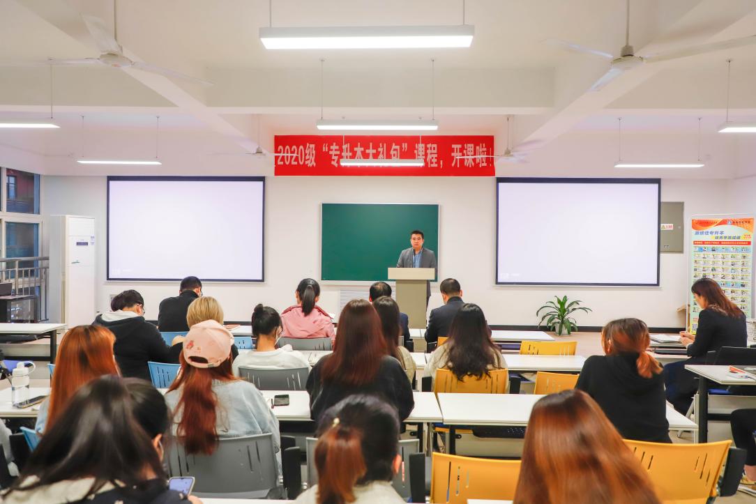8858cc永利官网2020级“专升本大礼包”课程将于每周一、周四晚自习时间在校内开展,来自高职学院的297名学生将参加此次免费培训课程。