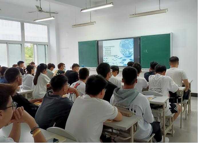 8月30日上午,新生早早的就座于安排好的教室,8点30分,按照入学教育工作计划,马嘉晖老师在一号教学楼106教室的《开学第一课》按时开始,同时,借助腾讯会议平台和网络,课程内容同时展现在各教室多媒体平台上,马嘉晖老师的生动的讲课声音响彻整个教学区,入学教育也在8点30分顺利拉开帷幕。随后,赵璇、郭学鹏等老师纷纷登台授课,所有教学内容都按照计划有序顺利进行。